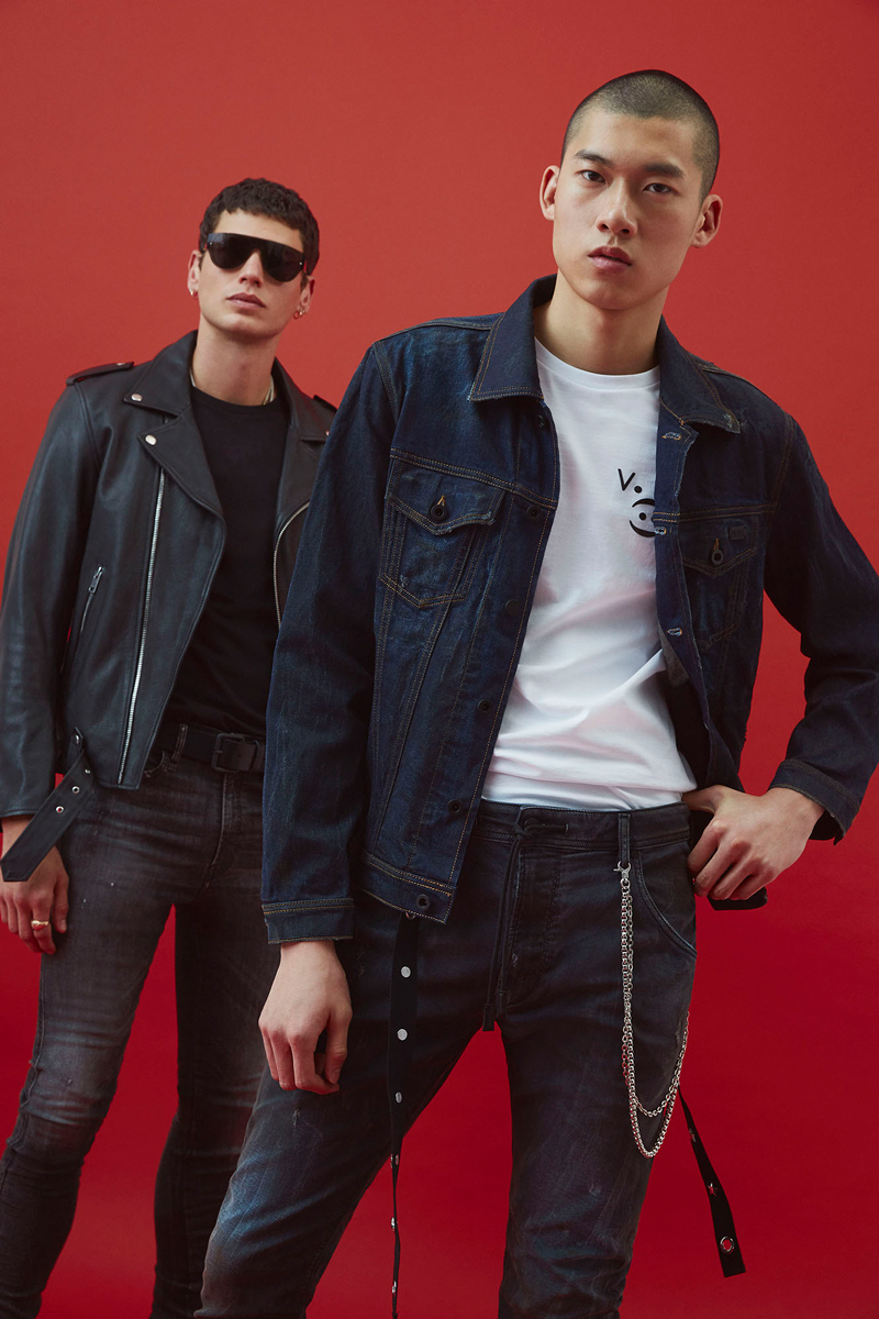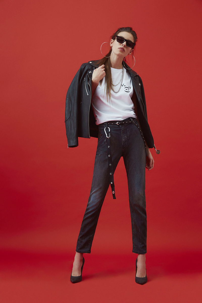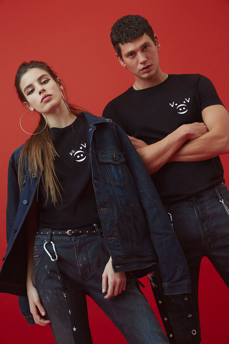 งานเดนิมมีทั้งแจ็คเก็ตมีกระเป๋าที่อกสองข้างของคุณผู้ชายและชุดเดรสของคุณผู้หญิง โดยมีรายละเอียดของการฟอกสีผ้าให้ซีด ประดับด้วยวัสดุโลหะสีเมทัลลิก และการปะติดชิ้นหนัง ส่วนกางเกง Jogg Jeans รุ่นดังของดีเซลมีให้เลือกในคอลเลคชันนี้ด้วยเช่นกัน โดยสำหรับคุณผู้ชายตัดมาในทรงแคบเข้าพอดีตัว ส่วนของคุณผู้หญิงเป็นทรงบอยเฟรนด์ ทั้งสองรุ่นมีรายละเอียดของการพ่นสีสเปรย์สีทองเพิ่มความเท่ให้กับงานแต่ละชิ้น