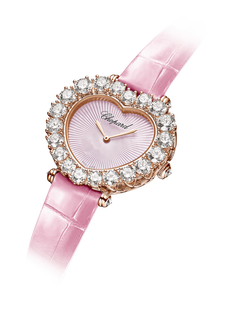 With L'Heure du Diamant, Chopard captures the beauty of diamonds. Thanks to historical expertise cultivated since the 1960s, its workshops orchestrate an encounter between the queen of precious stones and contemporary design. The collection stemming from this genius now welcomes a timepiece shaped like the Maison’s cherished heart symbol and graced with a pink mother-of-pearl dial featuring refined guilloché work.