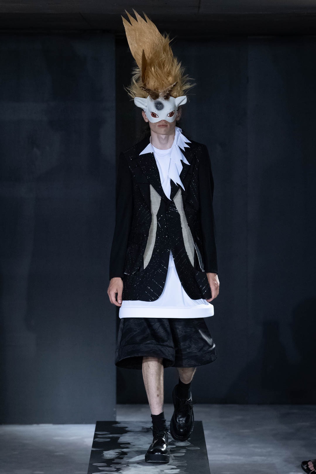 เสื้อเชิ้ต เสื้อยืด กางเกงขาสั้น กางเกงขายาว ทรงบอลลูน ทรงหลวม หรือกางกงเกงทรงพอดีตัว กับเสื้อแจ๊กเก็ต เสื้อโค้ต หลากขนาด จับคู่กับรองเท้าโลฟเฟอร์แบบยุคกลาง ที่รวมอยู่ในคอลเล็คชั่น COMME des GARCONS HOMME PLUS 2023 เป็นดั่งผลงานที่เกิดจากการนำความคิดสร้างสรรค์ที่สั่งสมไว้มาผสมผสานกับสถานการณ์โลกปัจจุบัน ทำให้เกิดรูปแบบใหม่ที่พาเราออกจากห้วงเวลาที่หยุดนิ่งมาเนิ่นนานได้สำเร็จ