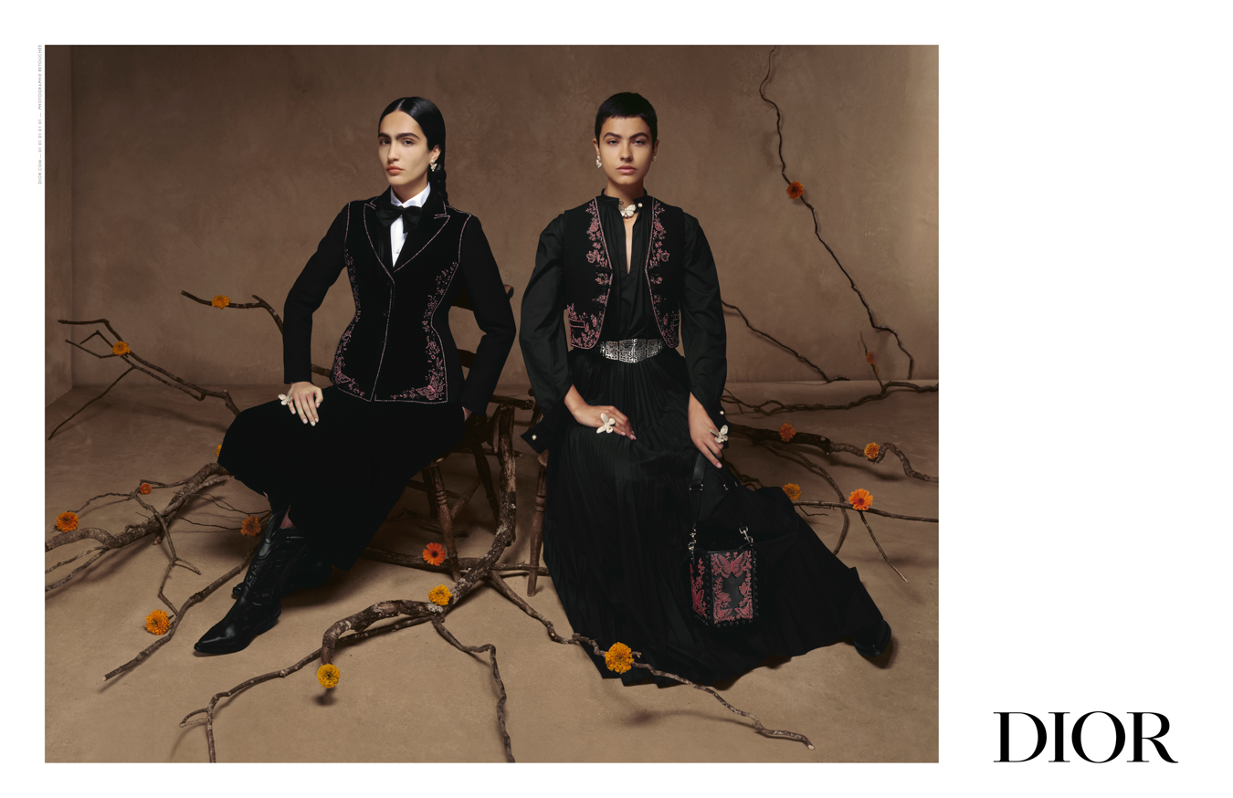 A "place of the soul", such is Mexico according to Maria Grazia Chiuri, just as it was for many key women surrealist artists, from Leonora Carrington to Tina Modotti. Inhabited by this marvellous inventiveness, the Dior silhouettes are revealed in shots of magnetic moments conceived and captured by photographer Brigitte Niedermair. Weaving an entrancing Ariadne's thread, the emblematic figure of Frida Kahlo, her audacity and free spirit – celebrated at the heart of this Dior cruise 2024 collection – pervade the entire campaign. Her independence, her faith in the unwavering power of art and life, shine through the models' determined attitudes and gazes. With the interplay of mirrors, these images embody the collective force, resilience and pride of Mexican women. In a dreamlike setting poetically evoking this prodigious, inexhaustible culture, the looks reflect the fervent dialogue between the excellence of the House's ateliers and the wealth of savoir-faire in this country cherished by Monsieur Dior. Full skirts unfurl into corollas and are worn with huipils, or architectural jackets embellished with refined guipure, co-created with local artisans. A fascinating journey that sketches a plural femininity, free, above all.