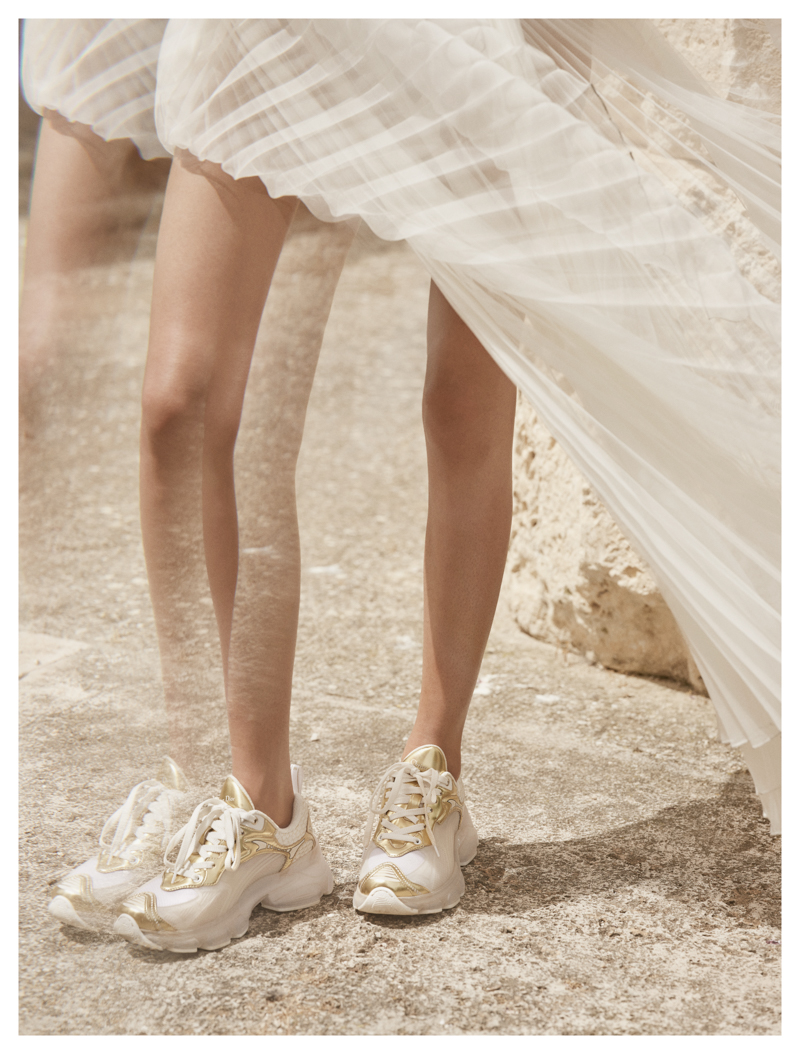 New to the women's wardrobe, the Dior Vibe sneakers, designed by Maria Grazia Chiuri for the Dior Cruise 2022 collection, revisit the running shoe. Distinctive for their play of transparent materials enhanced by gold or silver inserts, they feature a flexible rubber sole. A star – a magical code dear to the founding couturier –, adorns the creations, finished with the "Christian Dior” signature. Combining the world of sportswear and Dior style, these objects of desire are currently available in boutiques and at Dior.com.