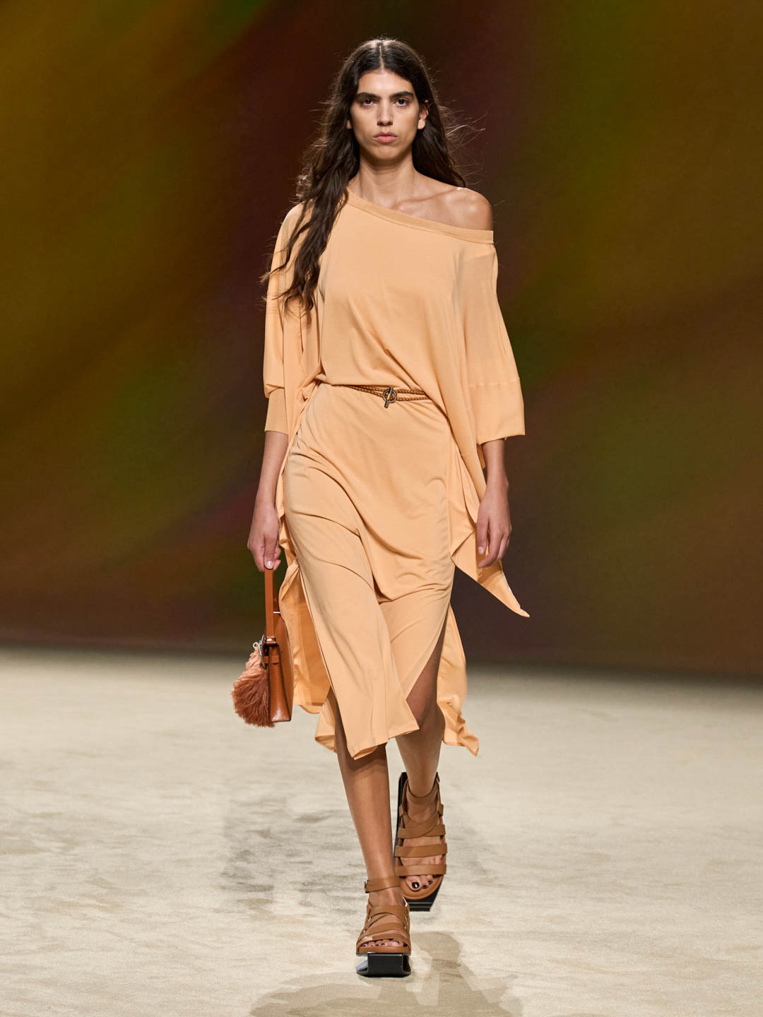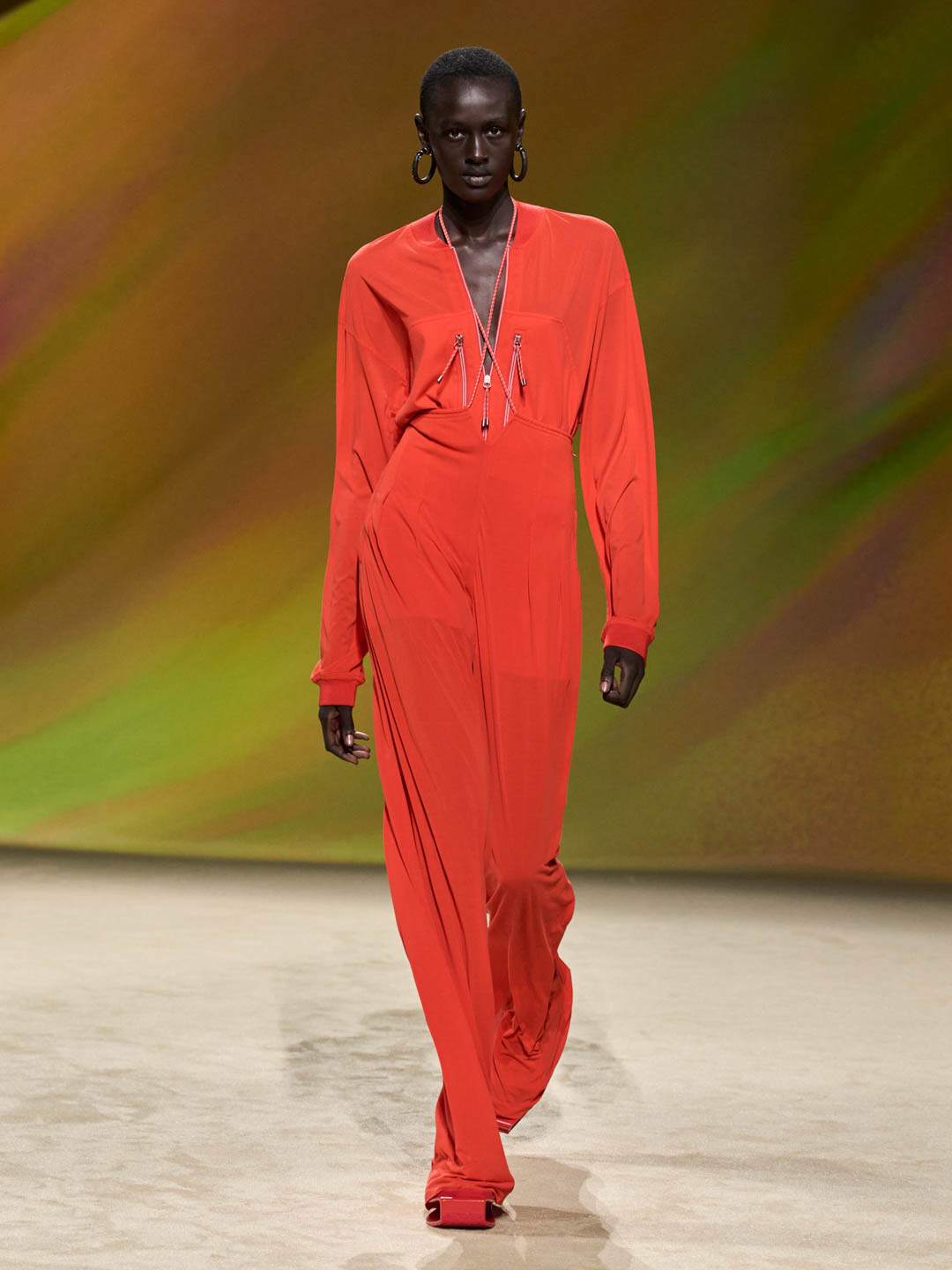 เสื้อผ้าแต่ละชิ้นราวกับถูกดัดแปลงมาจากอุปกรณ์แคมป์ปิ้ง ตาข่าย เปลญวน บางชิ้นชวนให้นึกถึงผืนธงที่โบกสะบัด