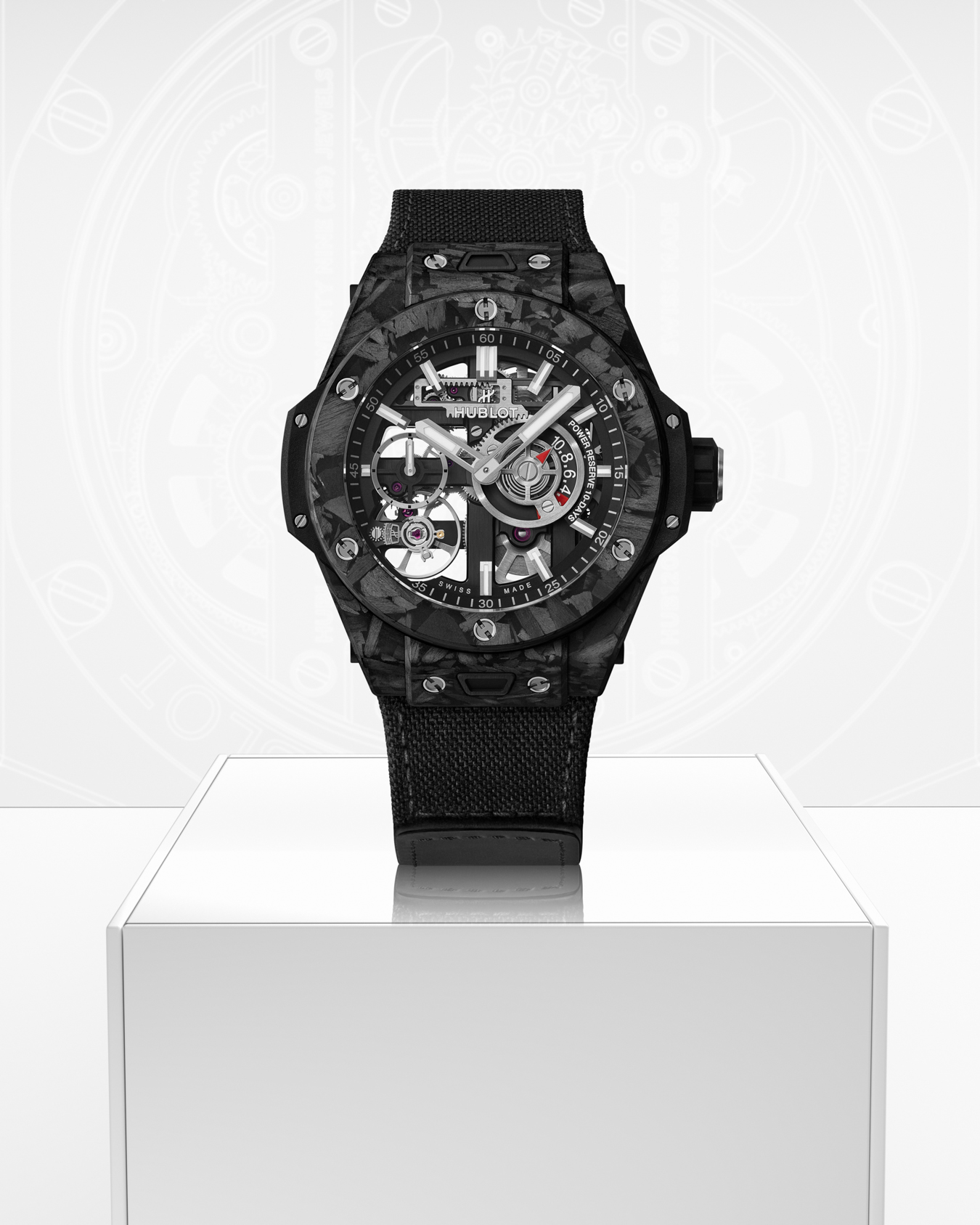 The balance wheel, positioned on the dial side of the movement, is entirely visible. Beyond providing ceaseless animation to the display, it also highlights Hublot’s unique and patented fine adjusted mechanism. The regulating organ features a lubricant-free and paramagnetic silicon escape wheel. For precise time-setting, the new Big Bang MECA-10 features a hacking seconds mechanism.