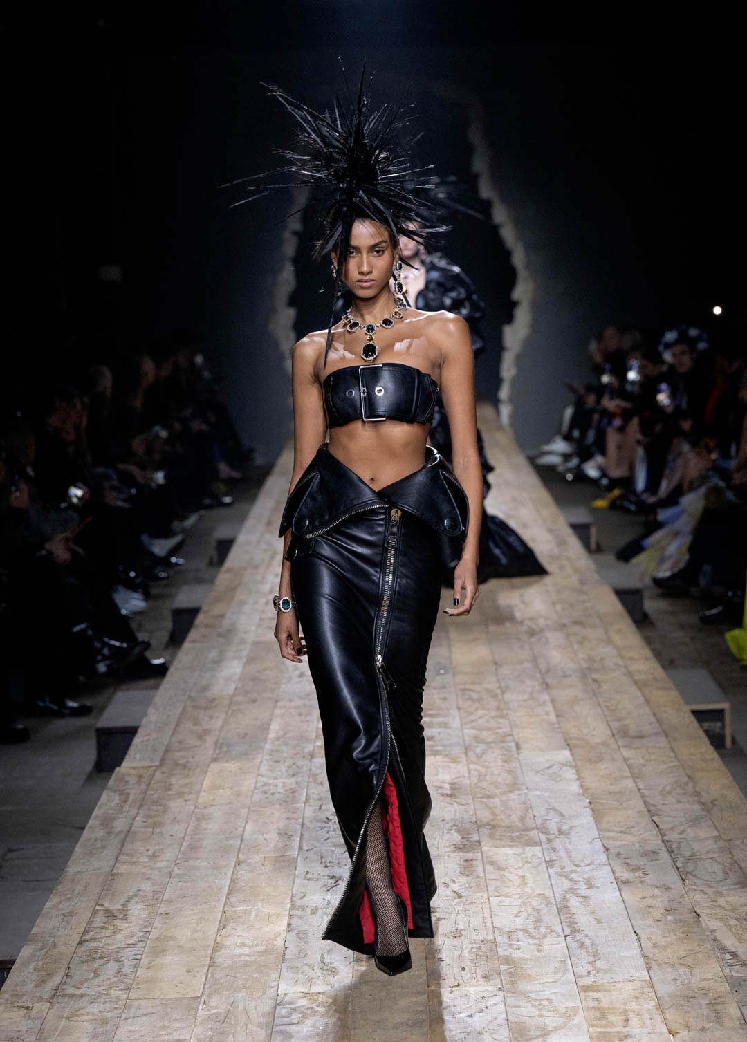 These (literally) twisted codes are creative director Jeremy Scott's way of toying with convention and setting the stage for what follows: An insouciant punk spirit, dripping with decadence.