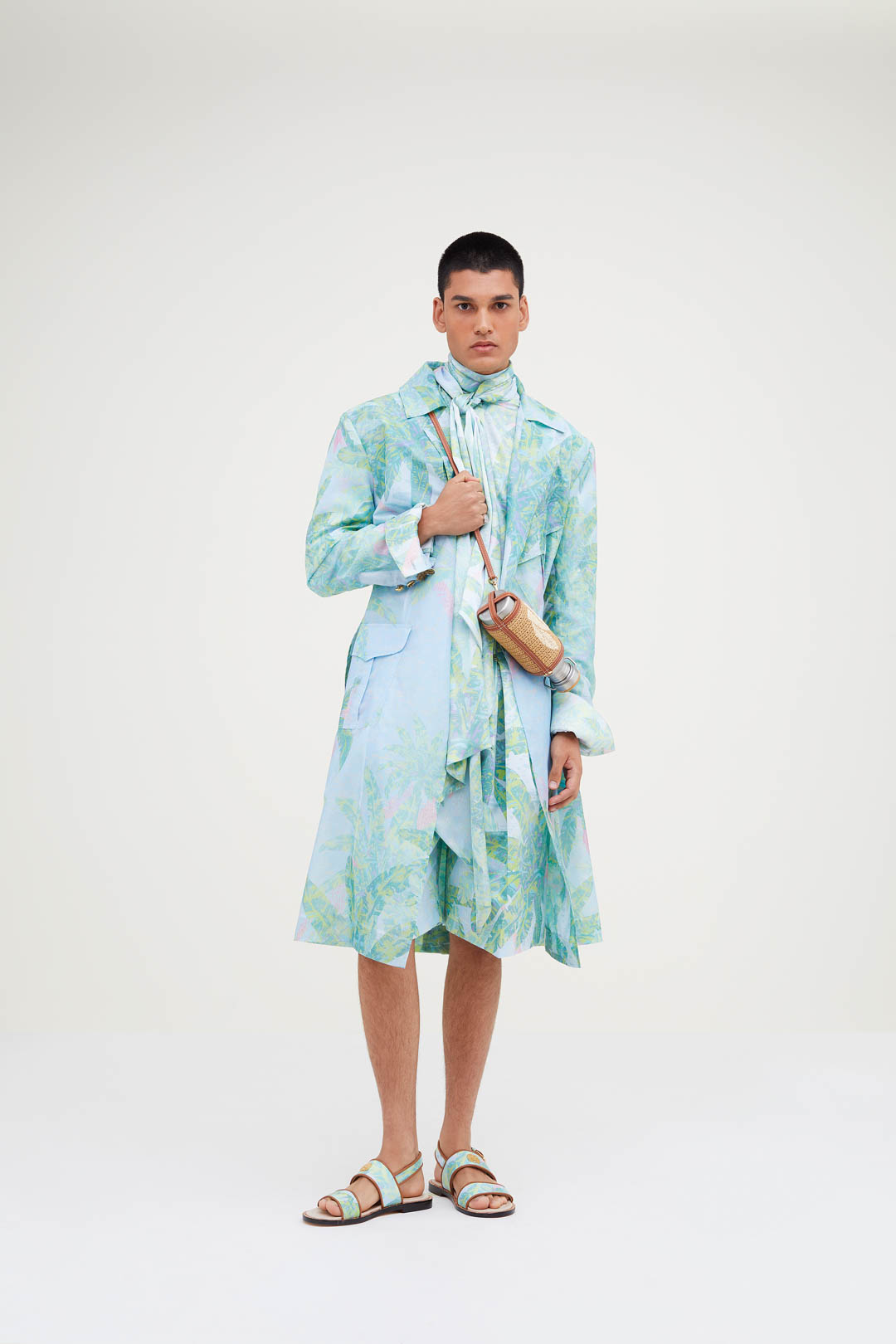 นอกจากวัสดุหญ้าราฟเฟียที่โดดเด่น ยังเพิ่มความสนุกให้กับแฟชั่นในฤดูร้อนนี้ ด้วยลายผ้าพิมพ์ประจำคอลเลกชัน สร้างสรรค์เป็นรองเท้าหุ้มส้นเอสพาดริลล์ (Espadrilles) และรองเท้าแตะ(Slingback Sandals) ตกแต่งหนังแท้ สำหรับสวมใส่ได้ตลอดวัน ทั้งสำหรับผู้หญิงและผู้ชาย ผ้าพิมพ์ลวดลายใบไม้ในโทนสีเขียวและสีฟ้าพาสเทล สบายตา ซึ่งเป็นลายเส้นที่มาจากภาพวาดฝีพระหัตถ์ขององค์ดีไซเนอร์ผู้เป็นผู้อำนวยการฝ่ายสร้างสรรค์ของแบรนด์ โดยมีแรงบันดาลใจจากต้นไม้ประจำเขตร้อนในเอเชีย อย่างต้นกล้วย