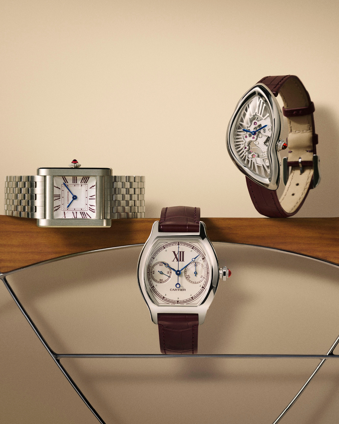 ขณะเดียวกัน ไลน์ คาร์เทียร์ พริเว่ (Cartier Privé) ยังคงทำหน้าที่ถ่ายทอดมรดกของเมซง ผ่านการตีความเรือนเวลาระดับตำนานอย่าง แครช สเกเลตต์ (Crash Squelette) และ แทงก์ นอร์มาล (Tank Normale) ให้มีชีวิตในบริบทใหม่ ส่วน ตอร์ทู (Tortue) ก็กลับมาอีกครั้งในภาพของความสมดุลระหว่างความเรียบง่ายและความหรูหรา ด้วยเส้นโค้งที่ทั้งนุ่มนวลและเฉียบคมในเวลาเดียวกัน