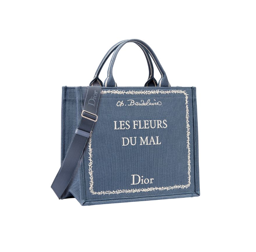 หนึ่งในดีไซน์สำคัญของ ดิออร์ บุ๊ก โท้ต (Dior Book Tote) คือการถ่ายทอดหน้าปกของ Dior by Dior อัตชีวประวัติของคริสเตียน ดิออร์ (Christian Dior) ลงบนผืนผ้าในโทนสีครีม พร้อมงานปักชื่อหนังสือในลายเซ็นอันเป็นเอกลักษณ์ ประดับด้วยริบบิ้นสีชมพูอ่อน ขณะที่แนวคิดนี้ยังขยายไปสู่ The Book Cover Collection ที่ยกย่องวรรณกรรมระดับไอคอน ไม่ว่าจะเป็น Les Liaisons Dangereuses, Madame Bovary, Dracula, Ulysses, In Cold Blood, Les Fleurs du Mal และ Bonjour Tristesse ถ่ายทอดผ่านงานปักอย่างประณีตบนซิลลูเอทอันเป็นเอกลักษณ์