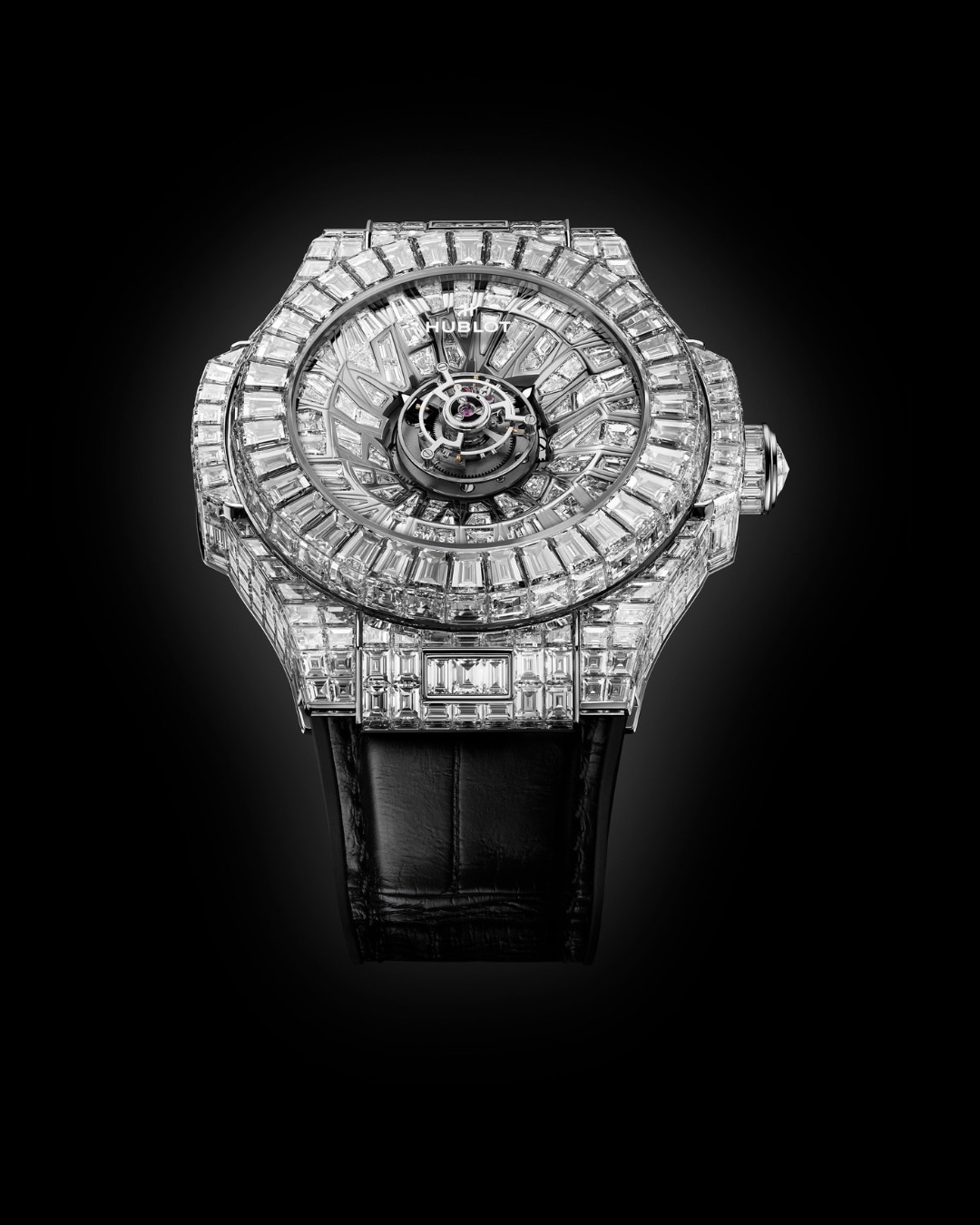 อีกหนึ่งก้าวสำคัญคือ สปิริต ออฟ บิ๊ก แบง อิมแพคต์ (Spirit of Big Bang Impact) ที่สะท้อนความกล้าทางเทคนิคอย่างแท้จริง ด้วยการนำเพชรฝังลงบนวัสดุแซฟไฟร์เป็นครั้งแรก ความท้าทายของการทำงานกับหนึ่งในวัสดุที่แข็งที่สุดในโลก ถูกแปรเปลี่ยนเป็นงานออกแบบที่ทั้งทรงพลังและงดงาม โครงสร้างแบบแตกกระจายถูกถ่ายทอดผ่านตัวเรือนโปร่งใส สร้างมิติใหม่ของการมองเห็นกลไกภายใน