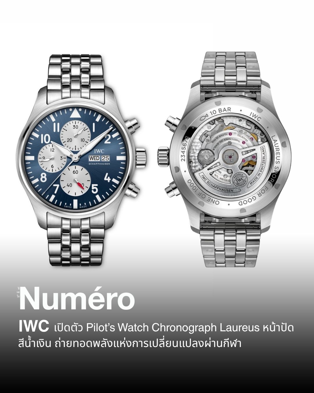 ไอดับบลิวซี ชาฟฟ์เฮาเซน (IWC Schaffhausen) เปิดตัวนาฬิการุ่นพิเศษ ไพลอตส์ วอทช์ โครโนกราฟ ลอริอุส (Pilot’s Watch Chronograph Laureus) รุ่นล่าสุด ในงานแสดงนาฬิกา ที่นครเจนีวา ปี 2026 (Watches and Wonders Geneva 2026) ที่มาพร้อมหน้าปัดสีน้ำเงินอันเป็นเอกลักษณ์ เพื่อสนับสนุน ลอริอุส สปอตส์ ฟอร์ กู๊ด (Laureus Sport for Good) องค์กรที่ใช้พลังของกีฬาในการสร้างการเปลี่ยนแปลงทางสังคม