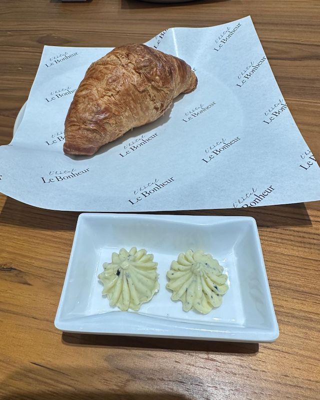 เอกลักษณ์ในเรื่องของอาหารที่ผู้มาเยือนกล่าวถึงมากที่สุดคือ เบเกอรี่สไตล์ฝรั่งเศสที่อบสดใหม่ทุกวัน โดยเฉพาะครัวซองต์เนยแท้ที่ขึ้นชื่อของที่นี่ แป้งครัวซองต์ถูกอบจนได้ชั้นเนื้อแป้งที่บางกรอบด้านนอก แต่ยังคงความนุ่มละมุนอยู่ด้านใน กลิ่นหอมของเนยคุณภาพดีที่กระจายอยู่ในทุกชั้นของแป้งทำให้ครัวซองต์ของที่นี่มีรสชาติกลมกล่อมและไม่เลี่ยนเกินไป จนกลายเป็นเมนูที่หลายคนตั้งใจมาลองเมื่อมาเยือน นอกจากครัวซองต์แล้ว ยามเช้ายังเสิร์ฟซาวร์โด (Sourdough) กับเนยทรัฟเฟิลหอมกรุ่น (Truffle butter) คาเฟ่ของโรงแรมยังมีเค้กและขนมหวานหลากหลายชนิดที่ถูกออกแบบให้มีรสชาติสมดุล ไม่หวานจัดเกินไปแบบเบเกอรี่สมัยใหม่ ทำให้สามารถรับประทานได้ในทุกช่วงเวลา