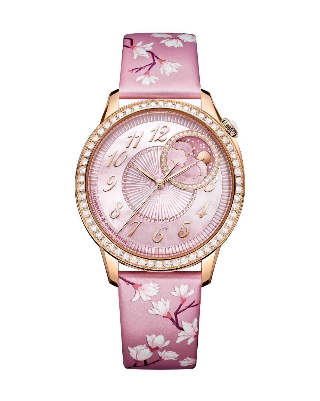 เริ่มจากโอเวอร์ซีส์ เซลฟ์-ไวน์ดิง อัลตร้า-ธิน (Overseas Self-Winding Ultra-Thin) ที่โดดเด่นด้วยกลไกอัตโนมัติแบบบางพิเศษ ซึ่งใช้โครงสร้างไมโคร-โรเตอร์ และการจัดวางกลไกอย่างซับซ้อนเพื่อให้ตัวเรือนมีความบางเป็นพิเศษ แต่ยังคงพลังงานสำรองยาวนานและความเสถียรในการทำงานได้อย่างน่าประทับใจ ผสานกับดีไซน์สปอร์ตหรูในแบบฉบับโอเวอร์ซีส์ (Overseas) ที่สามารถเปลี่ยนสายได้หลากหลายรูปแบบ ตอบโจทย์ทั้งการใช้งานในชีวิตประจำวันและโอกาสทางการ ในขณะที่เอเฌรี มูน เฟส สปริง บลอสซัม (Égérie Moon Phase Spring Blossom) ถ่ายทอดความงดงามของฤดูใบไม้ผลิผ่านงานศิลป์ชั้นสูง รายละเอียดดอกไม้ที่รังสรรค์อย่างประณีตทั้งบนหน้าปัดและสายนาฬิกา เสริมด้วยฟังก์ชันฟังก์ชันแสดงข้างขึ้นข้างแรม (Moon Phase) ที่เพิ่มมิติของความโรแมนติกและความละเมียดละไม