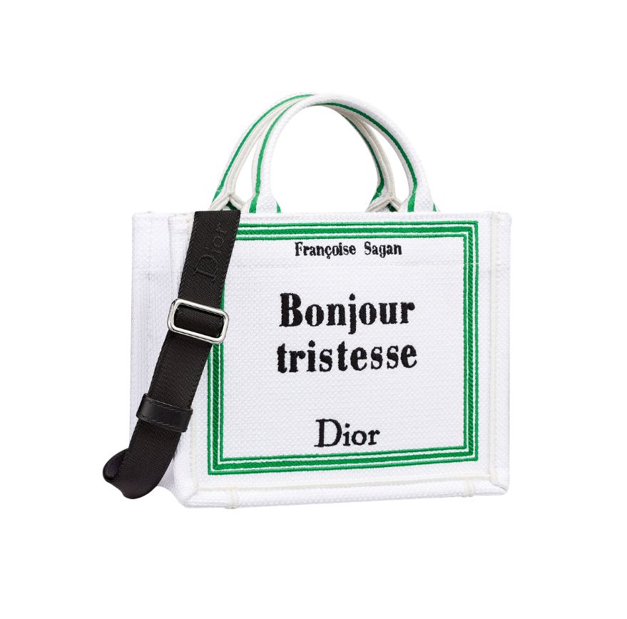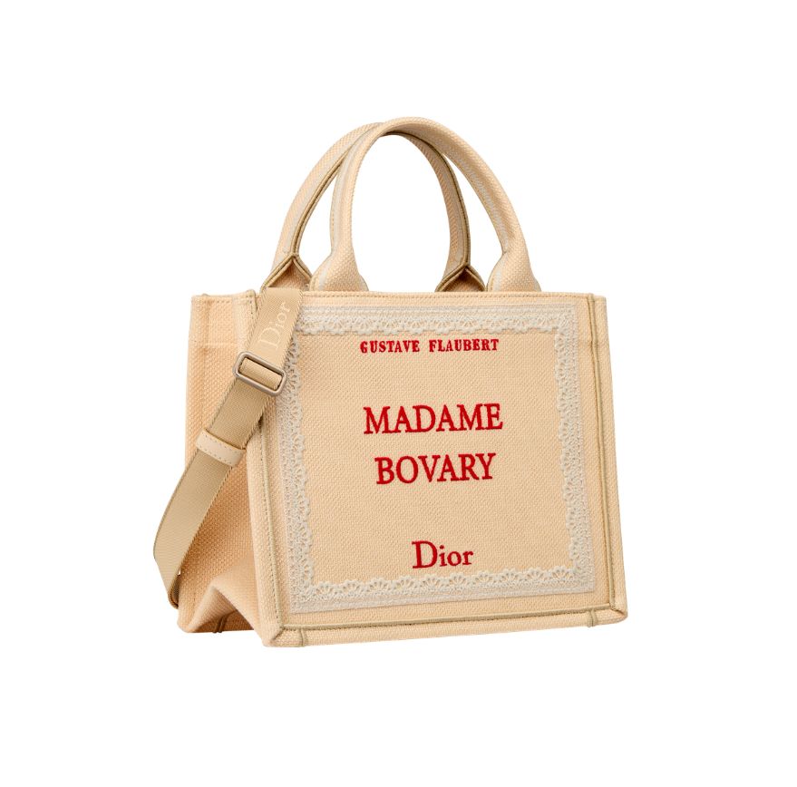หนึ่งในดีไซน์สำคัญของ ดิออร์ บุ๊ก โท้ต (Dior Book Tote) คือการถ่ายทอดหน้าปกของ Dior by Dior อัตชีวประวัติของคริสเตียน ดิออร์ (Christian Dior) ลงบนผืนผ้าในโทนสีครีม พร้อมงานปักชื่อหนังสือในลายเซ็นอันเป็นเอกลักษณ์ ประดับด้วยริบบิ้นสีชมพูอ่อน ขณะที่แนวคิดนี้ยังขยายไปสู่ The Book Cover Collection ที่ยกย่องวรรณกรรมระดับไอคอน ไม่ว่าจะเป็น Les Liaisons Dangereuses, Madame Bovary, Dracula, Ulysses, In Cold Blood, Les Fleurs du Mal และ Bonjour Tristesse ถ่ายทอดผ่านงานปักอย่างประณีตบนซิลลูเอทอันเป็นเอกลักษณ์
