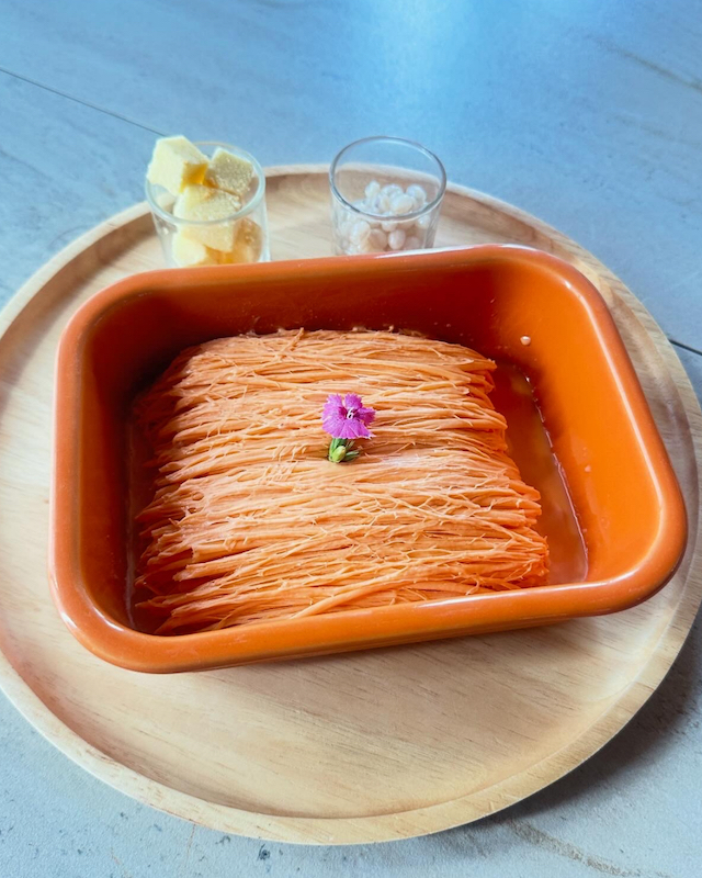 นอกจากนี้ คาเฟ่ยังมีเมนูของหวานยอดนิยมอย่าง บิงซู (Bingsu) น้ำแข็งเกล็ดละเอียดเนื้อนุ่มที่ละลายในปากได้ทันที ให้ความสดชื่นเหมาะกับบรรยากาศเย็นสบายของเขาค้อ มีรสชาติให้เลือกหลากหลาย เช่น มัจฉะ นม และชาไทย แต่ละรสให้กลิ่นหอมและความหวานกำลังดี การเสิร์ฟยังได้รับการออกแบบอย่างสวยงาม ทำให้บิงซูหนึ่งถ้วยสามารถแบ่งรับประทานร่วมกันได้อย่างสนุกสนาน และกลายเป็นเมนูยอดนิยมของนักท่องเที่ยว โดยเฉพาะกลุ่มคนรุ่นใหม่ที่มองหาทั้งรสชาติและบรรยากาศในเวลาเดียวกัน