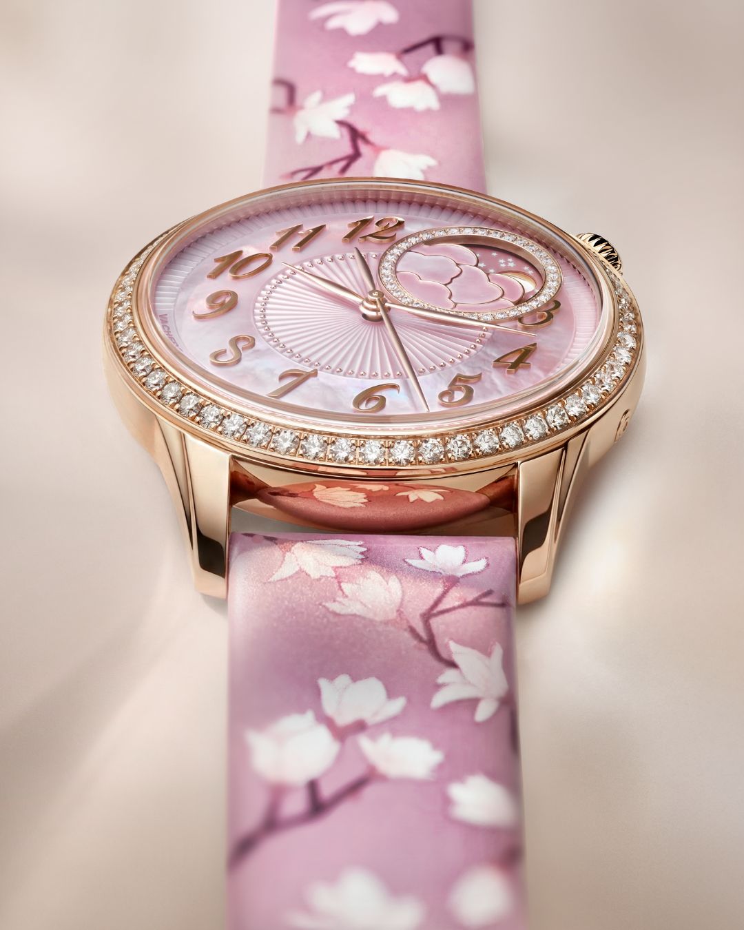 เริ่มจากโอเวอร์ซีส์ เซลฟ์-ไวน์ดิง อัลตร้า-ธิน (Overseas Self-Winding Ultra-Thin) ที่โดดเด่นด้วยกลไกอัตโนมัติแบบบางพิเศษ ซึ่งใช้โครงสร้างไมโคร-โรเตอร์ และการจัดวางกลไกอย่างซับซ้อนเพื่อให้ตัวเรือนมีความบางเป็นพิเศษ แต่ยังคงพลังงานสำรองยาวนานและความเสถียรในการทำงานได้อย่างน่าประทับใจ ผสานกับดีไซน์สปอร์ตหรูในแบบฉบับโอเวอร์ซีส์ (Overseas) ที่สามารถเปลี่ยนสายได้หลากหลายรูปแบบ ตอบโจทย์ทั้งการใช้งานในชีวิตประจำวันและโอกาสทางการ ในขณะที่เอเฌรี มูน เฟส สปริง บลอสซัม (Égérie Moon Phase Spring Blossom) ถ่ายทอดความงดงามของฤดูใบไม้ผลิผ่านงานศิลป์ชั้นสูง รายละเอียดดอกไม้ที่รังสรรค์อย่างประณีตทั้งบนหน้าปัดและสายนาฬิกา เสริมด้วยฟังก์ชันฟังก์ชันแสดงข้างขึ้นข้างแรม (Moon Phase) ที่เพิ่มมิติของความโรแมนติกและความละเมียดละไม